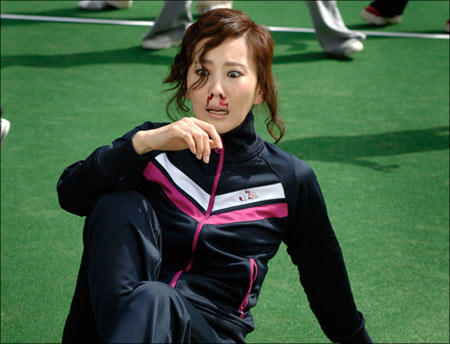 據(jù)攝制組介紹,李惠英扔的球狠狠地打在金南珠的額頭上,發(fā)出了啪啪的響聲。金南珠和李惠英奮不顧身的精神和細(xì)膩的表情演技受到了在場人們的鼓掌喝采。