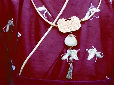 黛玉著綠,寶釵穿白,近距離打量,大概是拍了大半年了的緣故,衣服都有些舊了。寶玉胸口那塊通靈寶玉據(jù)說是很貴的,于小彤介紹說是羊脂玉,仔細(xì)打量,上面居然還刻著“通靈寶玉”四個(gè)字,頓時(shí)把我看傻了:不是應(yīng)該刻“莫失莫忘,仙壽恒昌”嗎?