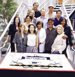 描寫醫(yī)務(wù)人員生活的熱門美劇《實(shí)習(xí)醫(yī)生格蕾》日前完成了第100集的拍攝工作。劇組在洛杉磯的片場舉辦了一個(gè)慶祝派對(duì),并特意準(zhǔn)備了一個(gè)帶有“聽診器”、 “手術(shù)刀”等圖案的大蛋糕。包括帕特里克·德姆西、桑德拉·歐、凱瑟琳·海格爾(前排右一)等主演均到場留下了“全家!。