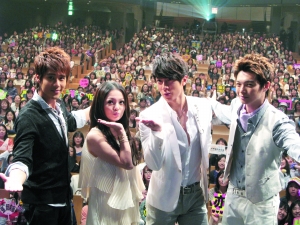 吳尊與張韶涵這對緋聞情侶,與辰亦儒、胡宇崴近日一起到大阪宣傳《公主小妹》。影迷見面會中,張韶涵見到臺下全是女性影迷,馬上轉(zhuǎn)頭對吳尊撒嬌,指自己若對著女生告白很怪,所以叫吳尊望著她。