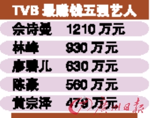 陳豪和廖碧兒也不介意以情侶檔公開(kāi)露面和合作,兩人收入都在前5。而去年都入前5的郭晉安和胡杏兒,郭晉安因牽掛兒子而減少工作,胡杏兒因沒(méi)有代表作,雙雙跌出5強(qiáng)。