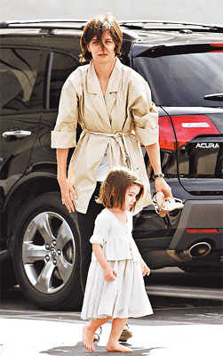 中新網(wǎng)3月4日電 “阿湯嫂”凱蒂·赫爾姆斯(Katie Holmes)上周末帶女兒蘇瑞上畫畫課,蘇瑞涂鴉得太開心,下課后活蹦亂跳,還在樓梯上跳舞,并脫掉涼鞋,赤腳在地上走。凱蒂卻面露疲態(tài),外傳她最近為了替蘇瑞添弟妹,力行幫助受孕的排毒減肥法,卻讓她精神不濟,日益消瘦。