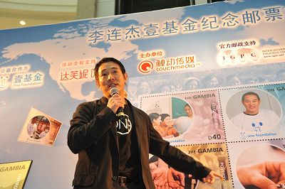 在活動現(xiàn)場,李連杰與觸動傳媒聯(lián)袂揭曉了6枚一套的慈善紀(jì)念郵票。據(jù)了解,這套郵票限量10萬套,定價為111元一套。這個價錢是李連杰要求的,因?yàn)?11元符合壹基金“每1人+每1個月+每1元=1個大家庭”的理念,而該郵票實(shí)際面值超過60元。在昨天的活動上還發(fā)生了一段小插曲,一名來自西安的女粉絲在參與觀眾提問環(huán)節(jié)時向李連杰“示愛”。該粉絲拿到話筒后就顯得很激動,全身上下不停地抖動,在哆嗦了半天后她大喊:“我是你西安的影迷,我從小就喜歡看你的電影,我好崇拜你,我夢想就是找到像你這樣的老公。”此話一出讓有妻有女的李連杰很尷尬,他只好在臺上傻笑。過了幾十秒,李連杰才蹦出兩個字“謝謝”。