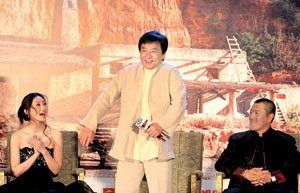 一開場,導(dǎo)演丁晟就為全場定下了基調(diào):“為了能跟大哥合作,我看了大哥的每一部電影,大哥……”一連串的“大哥”,叫得坐在一旁的成龍樂不可支。隨后,“小將”王力宏、劉承俊、女主角林鵬等輪流發(fā)言。