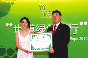 繼去年擔(dān)任“聯(lián)合國中國區(qū)首位親善大使”后,昨天周迅再度榮任上海世博會“綠色出行大使”,成為首位獲此榮譽(yù)的藝人。開始以雙重“大使”的身份,倡導(dǎo)低碳生活,為綠色出行獻(xiàn)上自己的一份力量。