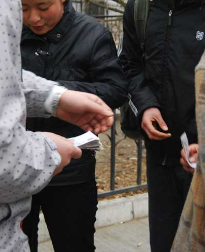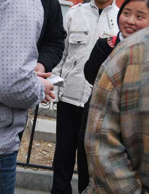 從趙焱手里領到錢的群眾演員小李告訴記者:“他問我有沒有吃飯,很關切的樣子,我說我好多天沒拍戲了,好久沒吃一餐飽飯了,他就給了我五十塊錢,讓我去吃個飽飯,今天下雪,我真是又凍又餓,這五十塊錢真是雪中送炭!”記者注意到,趙焱給每一個人發(fā)錢前都會與人聊幾句,似乎是了解情況,然后決定要給這個人發(fā)多少錢,一位只領到五塊錢的小伙子告訴記者:“他在發(fā)錢的時候,有個出租車司機也跑過來領錢,他就沒給人家!