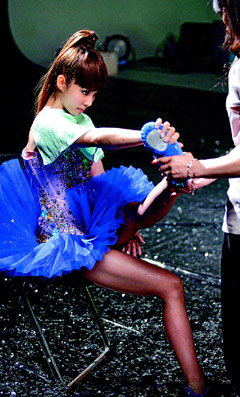 Jolin的芭蕾舞衣也大有來(lái)頭,馬甲加上藍(lán)色紗裙要價(jià)54萬(wàn)元新臺(tái)幣,原本對(duì)方不愿出售,直到Jolin透過(guò)美國(guó)設(shè)計(jì)師斡旋,她們才量身打造一件小size的鉆石馬甲,讓她受寵若驚,但要穿上這套鉆石馬甲,要?jiǎng)佑玫?個(gè)人幫忙,Jolin穿上后不敢大力呼吸,因?yàn)閷?shí)在太緊了!