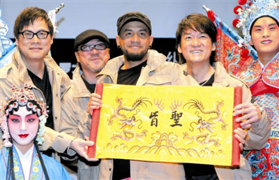昨天,一場(chǎng)以京劇元素引出的縱貫線北京演唱會(huì)發(fā)布會(huì)在皇家糧倉(cāng)舉行,羅大佑、李宗盛、周華健和張震岳悉數(shù)現(xiàn)身為北京站演唱會(huì)造勢(shì)。臺(tái)北首場(chǎng)演出大獲成功后,成龍自薦要當(dāng)表演嘉賓,李宗盛笑言“還以為那是恐嚇信”,周華健更添油加醋地大呼“我們一定要加強(qiáng)保安,他上臺(tái)可以,但是不能唱歌”。