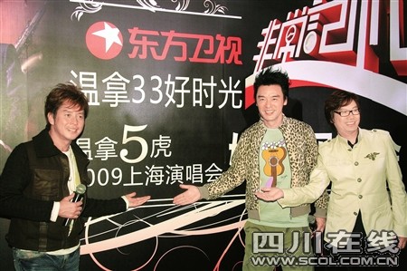 昨日,譚詠麟鐘鎮(zhèn)濤現(xiàn)身上海為“溫拿五虎2009上海演唱會(huì)”宣傳,譚校長(zhǎng)無(wú)意中泄密——
