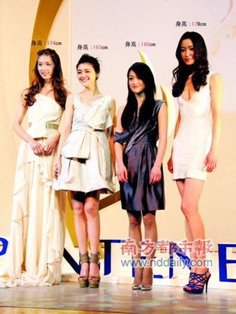 昨日,林志玲、周迅、名模杜鵑、大S(徐熙媛)一起在北京推廣四人代言的品牌。從圖片上看,身高163cm的大S和174cm的高個(gè)美女林志玲和179cm的名模杜鵑身高差距不大,仔細(xì)一看,原來是她穿了一雙令人瞠目的高跟鞋,即刻縮短與兩大名模的高度,落差不至于太大。對比之下,號稱身高160cm的周迅更顯得嬌小玲瓏。