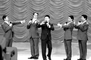 昨晚,央視2009年元宵晚會(huì)如期播出。由于是錄播,所以“我最喜歡的春節(jié)聯(lián)歡晚會(huì)節(jié)目”評(píng)選也已提前揭曉,《不差錢》拿下小品類一等獎(jiǎng),劉謙也奪得曲藝類一等獎(jiǎng)(本報(bào)昨日已報(bào)道)。在元宵晚會(huì)上,小沈陽(yáng)和劉謙的名字反復(fù)被眾多明星提及,而劉謙、朱軍更是模仿小沈陽(yáng)的音調(diào),引來(lái)陣陣笑聲。