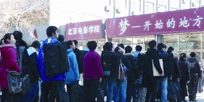 在影視界,“中戲”、“上戲”、“北電”呈三足鼎立之勢(shì),其地位無(wú)人可以撼動(dòng),人稱(chēng)“明星搖籃”。近年來(lái)這三所學(xué)校藝術(shù)考試持續(xù)升溫,報(bào)考人數(shù)屢創(chuàng)新高。在北電,表演專(zhuān)業(yè)一直被認(rèn)為是最難考的專(zhuān)業(yè),雖然今年的招生人數(shù)由往年的30人增加到75人,報(bào)名人數(shù)卻高達(dá)4234人,淘汰率為98.2%。即便知道面臨著如此殘酷的競(jìng)爭(zhēng),可那些懷揣著明星夢(mèng)想的俊男靚女們,仍不遠(yuǎn)萬(wàn)里,從五湖四海為了一個(gè)共同的目標(biāo)走到了一起,懷著明星夢(mèng)擠上這座獨(dú)木橋。