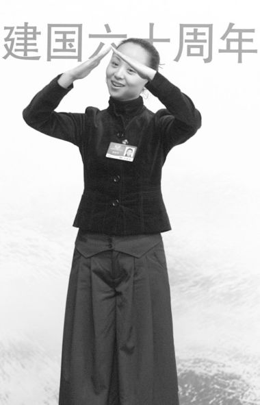 郎朗是用手指彈奏出《國家》美妙的旋律,而作為殘疾人代表參演MV的著名青年舞蹈家邰麗華也是用手表現(xiàn)出自己對這首歌的感受,不同的是邰麗華是用猶如唯美舞蹈一樣的手語來展現(xiàn)《國家》歌詞的深刻寓意。邰麗華幾天前收到導(dǎo)演組寄來的CD和歌詞,雖然聽不了音樂,但是看過歌詞之后,她也理解了這首歌的精髓,“我們作為特殊的群體,始終是大家庭中的一員,所以我特意編寫了手語,希望用特殊的方式來表達(dá)對共和國60歲生日的祝賀。”之后,邰麗華現(xiàn)場展示了給她觸動最大的幾句歌詞的手語——“我愛我的國,我愛我的家,我愛我國家”,靈動的手指如跳舞般熱情滿溢地表演。一同站在臺上的郎朗也深受感動,同邰麗華學(xué)著用手語來“演”出歌詞。