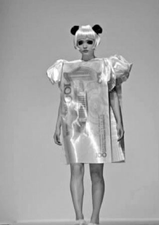 法國當?shù)貢r間3月20日晚9點,一場以“熊貓”為主題的服裝秀在巴黎東京宮上演。在這場時裝秀上,現(xiàn)今中國社會的各色人物都被搬上舞臺走秀。一位身穿印有百元人民幣的模特被稱為“股民”,另一位頭戴花帽、衣著性感的模特則被定義為“二奶”。