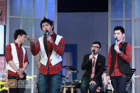 很少參加娛樂節(jié)目的當代大詩人汪國真,近日做客《天天向上》。在汪國真的率領下,來自中港臺三大名校的“少年詩人”們現(xiàn)場耍帥,大秀“詩藝”,惹得臺下一干女生尖叫連連。連主持群的五位帥哥也不甘風頭被搶,充分將搞笑元素溶入詩朗誦中,使得全場氣氛不斷高漲。此外,今天還是汪涵36歲生日,全場齊唱生日快樂,一片其樂融融。