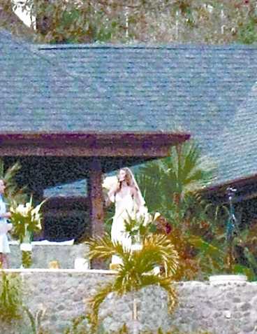 攝影師冒著“生命危險(xiǎn)”拍下的婚禮現(xiàn)場(chǎng)圖。依稀可見身穿白紗的吉賽爾·邦辰。據(jù)報(bào)道,保鏢們?cè)凇笆乃馈北Pl(wèi)主人時(shí),新娘子對(duì)婚禮上的“槍戰(zhàn)”一無所知。