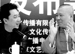 只要有郭德綱在的發(fā)布會,記者們都不愁沒內(nèi)容寫,因?yàn)楣戮V會把說相聲的技能也帶到會上來,于是每次記者招待會就變成“逗樂會”,無論媒體拋出什么樣的問題,郭德綱都會妙語連珠給予回應(yīng)。