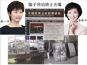 據(jù)《經(jīng)濟半小時》報道,央視記者在采訪中發(fā)現(xiàn),一個叫做“中國慈善公益聯(lián)盟組織”的網(wǎng)站公開打出了央視著名主持人敬一丹和李修平的形象。