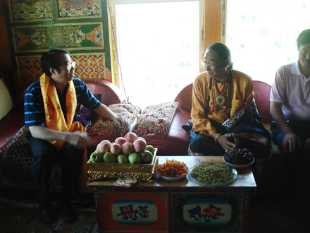 許又聲還與歸僑僑眷益西多吉、他洛、扎西澤仁進行座談交流。益西多吉:境外藏胞眷屬,現(xiàn)甘孜縣政協(xié)委員,個人辦有一家藏醫(yī)院,從事藏醫(yī)。其子益西絨波(又叫向巴喇嘛),現(xiàn)在瑞士然燈寺任管家;其女卓瑪青措,在瑞士結(jié)婚并育有四個子女。他洛:回國定居藏胞,1959年去印度,1983年回國定居務(wù)農(nóng),現(xiàn)任甘孜縣政協(xié)委員。扎西澤仁:滯留藏胞。1959年去印度,從事小型商業(yè)活動。2003年回家探訪侄兒生龍尼瑪,因病滯留至今。