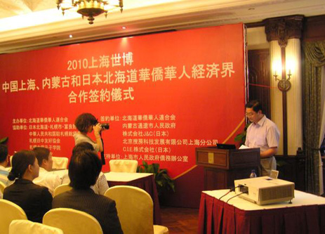 中新網(wǎng)9月8日電 據(jù)上海市僑辦網(wǎng)站消息,近日,由日本北海道華僑華人聯(lián)合會(huì)主辦的“2010上海世博——中國(guó)上海、內(nèi)蒙古和日本北海道華僑華人經(jīng)濟(jì)界合作簽約儀式”在滬舉行。上海市僑辦為活動(dòng)的支持單位,協(xié)作單位包括中國(guó)駐札幌總領(lǐng)事館、札幌日中友好協(xié)會(huì)、札幌大學(xué)孔子學(xué)院、東方航空等。上海市僑辦主任崔明華、中國(guó)駐札幌總領(lǐng)事胡勝才等出席簽約儀式。