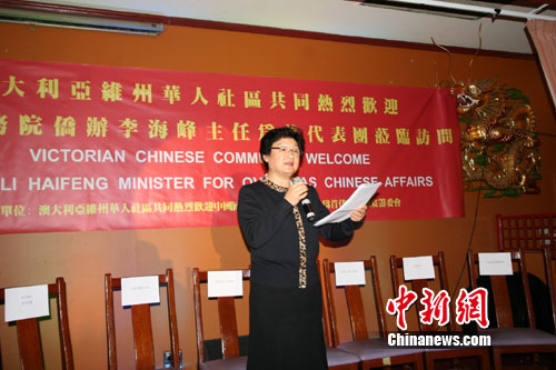 中新社墨爾本10月28日電 (記者 朱大強)中國國務(wù)院僑辦主任李海峰28日晚在墨爾本僑界舉行的歡迎宴會上表示,國務(wù)院僑辦是中國政府主管僑務(wù)工作的職能部門,將密切與海外華僑華人的聯(lián)系,支持海外僑胞生存發(fā)展。