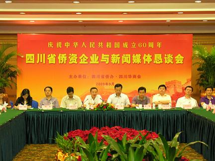 中新網(wǎng)9月7日電 為慶祝新中國(guó)成立60周年,日前四川省僑辦與四川華商會(huì)聯(lián)合舉辦了一場(chǎng)四川省僑資企業(yè)與新聞媒體懇談會(huì)。四川省僑辦僑聯(lián)黨組書(shū)記、省僑辦主任、四川華商會(huì)會(huì)長(zhǎng)周敏謙(中),在四川省僑資企業(yè)與新聞媒體懇談會(huì)上致辭。(四川僑網(wǎng))