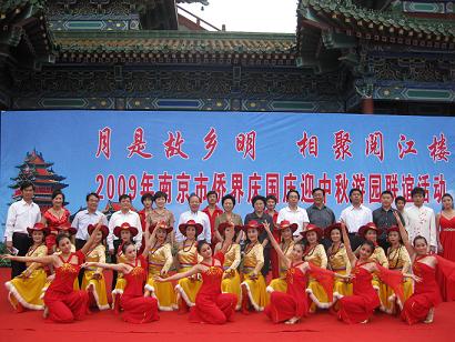 中新網(wǎng)9與30日電 9月29日下午,在南京市下關區(qū)閱江樓風景區(qū),隆重舉行了主題為“月是故鄉(xiāng)明 相聚閱江樓”的大型僑界游園聯(lián)誼活動。南京市歸僑僑眷代表、華僑華人代表、留學人員代表,約1000余人歡聚在閱江樓,登樓賞景,觀看演出,共迎中秋佳節(jié),共慶建國六十華誕。