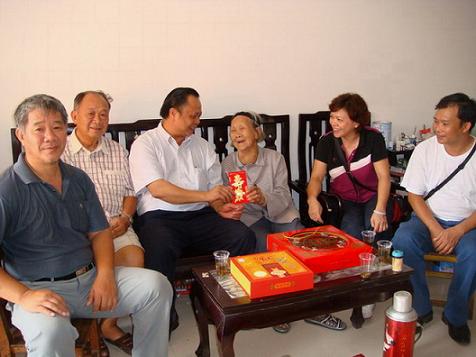李惠芬老歸僑是容縣容西鄉(xiāng)四傳村水枧隊人,1950年從馬來西亞回國,現(xiàn)跟隨兩個歸僑兒子住在容州鎮(zhèn)。當玉林市僑聯(lián)主席鐘雄一行來到李惠芬住地時,令她的家人感到非常驚喜。百歲的老歸僑李惠芬每天堅持鍛煉,身體還算硬朗,聽力也比較好,面色紅潤,非常健談,與玉林市僑聯(lián)主席鐘雄拉起家常和講述她在馬來西亞的情況時,侃侃而談,思路清晰,記性相當好。當接過僑聯(lián)送給她的生日禮品和祝壽金時,李惠芬老人拉住鐘雄的手連連說:謝謝!謝謝!其家人也對僑聯(lián)組織對老歸僑的關(guān)懷再三表示謝意。 (容縣僑聯(lián))