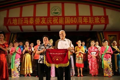 10月17日,《歌唱祖國》的大合唱再次在廣州萬寶大廈響起,僑友心聲,情深意濃。來自深圳、香港、珠海、汕頭、惠州、中山、梅州和廣州的新馬泰僑友歡聚一堂,載歌載舞慶祝中華人民共和國成立60周年暨廣州新馬僑友會(huì)成立24周年。廣東省僑聯(lián),廣州市僑辦、僑聯(lián),致公黨廣州市委員會(huì)的有關(guān)領(lǐng)導(dǎo),以及馬來西亞愛國工委會(huì)、鳳凰聯(lián)誼會(huì)等海外僑社團(tuán)代表到會(huì)祝賀。深圳新馬僑友會(huì)會(huì)長賴志平、原會(huì)長肖學(xué)聰、名譽(yù)會(huì)長莊榮新、深圳愛心媽媽陳觀玉等20余人赴廣州參加了聯(lián)歡活動(dòng),并獻(xiàn)上了文藝節(jié)目。