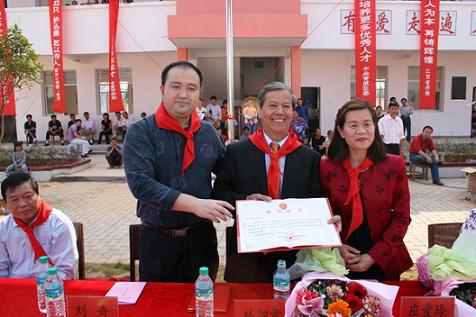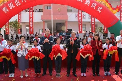 中新網(wǎng)11月4日電 據(jù)江西僑聯(lián)網(wǎng)站消息,2009年10月31日上午,江西省吉安市青原區(qū)富田鎮(zhèn)坪田小學(xué)鑼鼓陣陣,鞭炮長鳴,五顏六色的彩旗迎風(fēng)飄揚(yáng),同學(xué)們穿上了節(jié)日的盛裝,戴上鮮艷的紅領(lǐng)巾,臉上露出了燦爛的笑容,雙手興高采烈地?fù)]舞著美麗的鮮花,熱烈慶祝“加愛僑心小學(xué)”的落成。