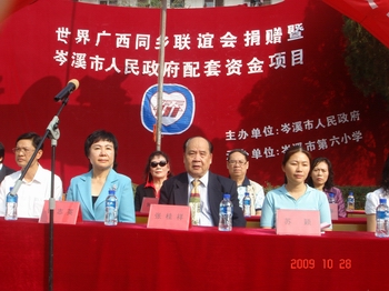 廣西自治區(qū)僑辦副主任鐘志英、副處長(zhǎng)藍(lán)勝,世界廣西同鄉(xiāng)聯(lián)誼會(huì)主席張桂祥等6位嘉賓,岑溪市黨委、政府及教育局、僑辦等相關(guān)部門領(lǐng)導(dǎo)出席了活動(dòng)。