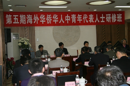 中新社北京十一月九日電(記者 張冬冬)由中華海外聯(lián)誼會(huì)主辦的第五期“海外華僑華人中青年代表人士研修班”九日上午在北京中華文化學(xué)院開(kāi)班。來(lái)自加拿大、英國(guó)、泰國(guó)等二十四個(gè)國(guó)家的四十一位海外華僑華人中青年代表人士,將在未來(lái)一周內(nèi)通過(guò)集中學(xué)習(xí)和實(shí)地考察的方式,了解當(dāng)代中國(guó)政治、經(jīng)濟(jì)、外交、文化、科技等方面情況。