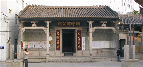 村頭石閘門始建于清嘉慶年間,同治十二年(1873)重修,俗稱“青龍口”,緊接角頭街,門額鑲有“古道循行”和“鶴聲高迥”兩塊石匾。村尾石閘門門額鑲有“步接青云”和“祥迎紫氣”石匾,主樓上的圓雕灰塑頗為精致。古渡頭遺址歷史上經(jīng)歷了多次遷址,現(xiàn)位于中街與上街之間,已成為石板街的一部分。位于村尾的“樂(lè)善好施”牌坊,是為表彰古鶴村鄭有庸遵母命賑災(zāi)有功而建,始建于清光緒八年(1882),石雕銘文有時(shí)任直隸總督李鴻章的手跡,頗為珍貴。