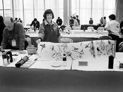 國際友人對筆會也是情有獨鐘。來自澳大利亞的博理查和宣月,已跟中國老師林伯墀學中國畫達10年之久。林老師讓宣月不但學中國畫,還要學更多的中國文化。她這次來想通過參與交流,開闊視野,取長補短,使自己的繪畫藝術再上一層樓。她還高興地展示了自創(chuàng)的花鳥畫集,并和博理查向藝術節(jié)敬獻了現(xiàn)場創(chuàng)作的“鮮花綻放圖”和“袋鼠翹首觀望圖”。來自美國西雅圖的畫家,把自己創(chuàng)作的一幅長達十幾米、影響類似中國《清明上河圖》的《西雅圖美景》大畫贈給了華人文化藝術節(jié)組委會,感動了在場的海內(nèi)外僑胞。