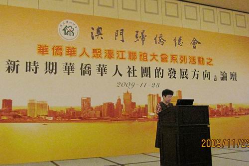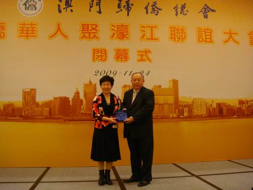 中新網(wǎng)12月2日電 據(jù)江蘇省僑聯(lián)消息,11月23日至24日,以江蘇省僑聯(lián)主席郁美蘭為團(tuán)長的江蘇省僑聯(lián)代表團(tuán)一行3人出席了在澳門舉行的“2009華僑華人聚濠江聯(lián)誼大會(huì)”。