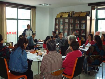在課上,蔣老首先演唱了“梁山伯和祝英臺(tái)的十八相送”選段,唱完后居民們紛紛鼓起了掌,對(duì)蔣老的唱功表示肯定。然后,蔣先生從最基礎(chǔ)的發(fā)聲教起,給大家講了發(fā)聲的要領(lǐng)和訣竅,不厭其煩地糾正大家發(fā)聲中的不足。最后,大家齊聲同唱了“碧玉簪”的選段,在一片歡聲笑語中結(jié)束了第一次課程。課后,蔣老笑著說:“真的謝謝社區(qū),讓我的愛好有了用武之地,也滿足了我唱越劇的愿望”。