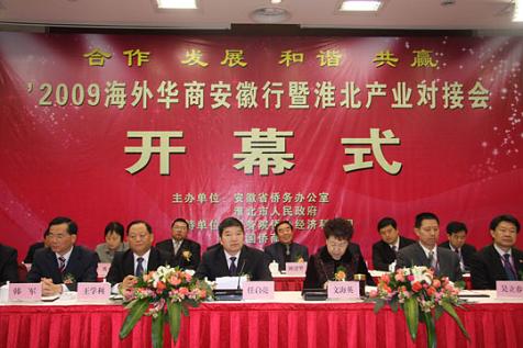 中新網12月10日電 據國僑辦網站消息,12月5-6日,由安徽省僑辦和淮北市政府共同主辦、國務院僑辦經濟科技司支持的“2009海外華商安徽行暨淮北產業(yè)對接會”在淮北市舉行。國僑辦副主任任啟亮、安徽省副省長文海英以及淮北市委書記畢美家出席活動并講話。50多位海外僑商以及淮北市委、市政府相關部門負責人參加了活動。