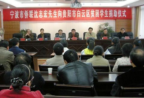 據(jù)悉,沈志宏系留學歸國人員,浙江前程投資股份有限公司董事長。當他通過寧波市僑聯(lián)了解到貴陽市白云區(qū)有一部分品學兼優(yōu)的農(nóng)村高中生因家庭困難上不起學時,沈先生當即表示愿意出錢資助這些學生上學。他認為,孩子是一個家庭的寄托,也是一個國家的未來,一個民族的希望。出一點錢,盡一點綿薄之力,能讓這些家庭經(jīng)濟困難的學生充分感受到社會的溫暖和關愛,讓他們不因貧困而跌倒在人生的起跑線上,是一個僑界企業(yè)家應盡的社會責任。