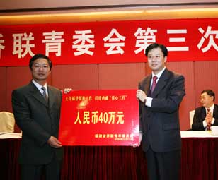 會(huì)上,還舉行了福建省僑聯(lián)青委會(huì)向省對(duì)口辦捐贈(zèng)40萬元援藏“僑心工程”善款的現(xiàn)場(chǎng)捐贈(zèng)儀式。