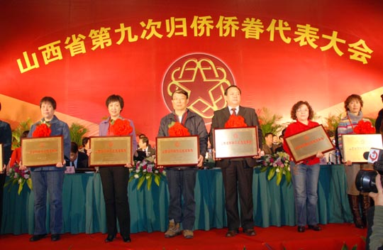 在開幕式上,張寶順、王君、薛延忠和王永樂對山西省外事僑務(wù)辦公室、山西省僑聯(lián)聯(lián)合表彰的四十九名全省歸僑僑眷先進(jìn)個人,山西省僑聯(lián)表彰的十個全省僑聯(lián)系統(tǒng)先進(jìn)集體和二十五名全省僑聯(lián)系統(tǒng)先進(jìn)個人頒發(fā)獎狀。