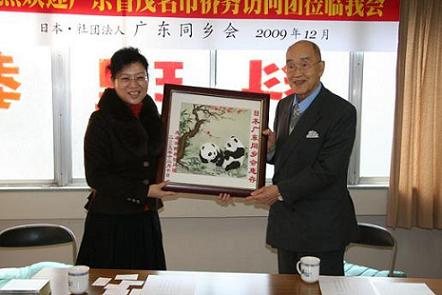 在日本訪問調(diào)研期間,僑務(wù)訪問團受到了日本廣東同鄉(xiāng)會的熱情接待。除會長陸煥鑫先生因公事出國訪問外,該會名譽會長郭少東、顧問李國松、副會長朱銘江、副會長潘創(chuàng)始率十幾位理、干事在會館迎候會見,召開歡迎會,雙方進行了熱情友好的交流。梁紅健在會上介紹了茂名經(jīng)濟社會發(fā)展情況,同時向該會贈送了茂名投資指南、茂名特式的南玉鎮(zhèn)紙以及富有中國特色的刺繡工藝品。朱銘江介紹了日本廣東同鄉(xiāng)會的總體情況,并向訪問團回贈了“吉祥虎”紀念品。會后廣東同鄉(xiāng)會備了豐盛的午宴熱情款待僑務(wù)訪問團,席間鄉(xiāng)情濃郁,追今撫昔,無所不談,令人深感同胞情熱、鄉(xiāng)情寶貴。訪問廣東同鄉(xiāng)會后,訪問團隨后走訪了居住日本橫檳、京都和大阪的旅日僑胞和留學(xué)日本學(xué)生,對茂名市旅日僑胞情況有了進一步的了解。