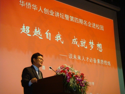 中新網(wǎng)12月30日電 據(jù)上海市僑辦消息,近日,由上海市僑辦與華東理工大學(xué)共同主辦的“華僑華人創(chuàng)業(yè)講壇”第三講在華東理工大學(xué)逸夫樓舉行。本次講壇特邀英特爾公司中國(guó)執(zhí)行董事、總經(jīng)理戈峻博士作主題為《超越自我,成就夢(mèng)想――談未來(lái)人才必備素質(zhì)修煉》的精彩報(bào)告,并與華東理工大學(xué)師生互動(dòng)交流。