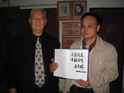 當(dāng)天下午,年近九旬的莊炎林,不顧旅途的疲勞,在梧州市僑聯(lián)主席鐘小欣、蒼梧縣統(tǒng)戰(zhàn)部部長李燕芬等領(lǐng)導(dǎo)的陪同下,來到蒼梧縣石橋鎮(zhèn)中心小學(xué)考察。其中心小學(xué)是莊炎林先生在抗日戰(zhàn)爭期間,以教師身份掩護(hù)開展地下工作的地方。今日重游故地,莊炎林先生格外激動(dòng),并向陪同人員講起了當(dāng)年的工作情景。隨后莊炎林先生一邊聽取該學(xué)校的情況,一邊參觀當(dāng)年曾用過的工作室,并在留言簿上題詞:為國利民,奉獻(xiàn)力行。(蔡光天)