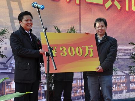 中新網(wǎng)12月31日電 據(jù)青田縣發(fā)展和改革局消息,12月28日,浙江省青田縣高市旅游接待中心舉行開工典禮。中國僑聯(lián)副主席、寧夏回族自治區(qū)僑聯(lián)主席、浙江省僑聯(lián)青年總會榮譽會長朱奕龍為開工典禮剪彩,并為高市村新農(nóng)村建設(shè)個人捐贈300萬元,青田縣領(lǐng)導王通林、楊雷、葉選君、陳海民、呂大德、舒志勇及縣相關(guān)職能部門代表參加了儀式。