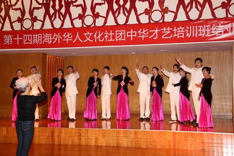 據(jù)介紹,深圳華夏藝術(shù)中心自2002年12月3日承辦第一期“中華才藝培訓(xùn)班”至今,已先后承辦了十期,60多個國家的600余學(xué)員在此接受過培訓(xùn)。為使學(xué)員們能將專業(yè)知識較為完整的帶回去鞏固和傳播,華夏藝術(shù)中心此次還專門編寫了舞蹈、聲樂教材!昂M馊A人文化社團(tuán)中華才藝培訓(xùn)班”的舉辦不僅為海外華社培訓(xùn)了一批高質(zhì)量的才藝骨干,更豐富了當(dāng)?shù)厝A僑華人的文化生活,并成為中國開展海外文化交流活動的重要內(nèi)容之一。在當(dāng)天舉行的結(jié)業(yè)典禮上,學(xué)員們還展示了一系列他們所學(xué)的傳統(tǒng)中華民族舞蹈和聲樂表演,匯報18天來的學(xué)習(xí)成果。(張平和)