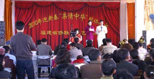 當(dāng)日下午,福建省僑聯(lián)文化藝術(shù)團(tuán)在農(nóng)場(chǎng)中學(xué)禮堂舉行了2010年迎新春“親情中華”慰?jī)S演出活動(dòng),這也是福建省僑聯(lián)文化藝術(shù)團(tuán)成立不久以來首次下鄉(xiāng)正式演出,意義不同尋常。藝術(shù)團(tuán)準(zhǔn)備的13個(gè)節(jié)目個(gè)個(gè)精彩,舞蹈《大唐華章》展現(xiàn)了盛唐中國的瑰麗風(fēng)采,葫蘆絲獨(dú)奏《月光下的鳳尾竹》把人們帶入了月光盈盈、竹影婆娑的美好境界,情景舞蹈《洗衣歌》使人領(lǐng)略了藏族風(fēng)情和軍民魚水情誼,等等。演出得到了僑場(chǎng)歸僑僑眷的熱烈歡迎,領(lǐng)導(dǎo)群眾歡聚一堂共賞精彩節(jié)目,氣氛熱烈祥和。(唐宜)