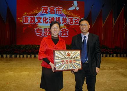 中新網(wǎng)1月20日電 據(jù)茂名外僑局消息,1月18日,由廣東省茂名市紀(jì)委、市直工委主辦的茂名市廉政文化進(jìn)機(jī)關(guān)活動(dòng)專題晚會(huì)在茂名影劇院隆重舉行,廣東省紀(jì)委領(lǐng)導(dǎo)及茂名市領(lǐng)導(dǎo)出席了晚會(huì)。晚會(huì)表彰了“十佳廉政文化理念”以及“廉政文化建設(shè)示范單位”,茂名市外事僑務(wù)局被評(píng)為茂名市“廉政文化建設(shè)示范單位”。