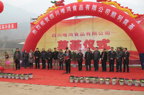 中新網1月26日電 據四川僑網消息,近日,由法國巴黎士多集團有限公司總裁、法國華裔互助會會長鄭輝先生投資的四川唯鴻食品有限公司食用菌基地奠基儀式在廣元市青川縣三鍋鄉(xiāng)舉行。四川省僑聯秘書長李楊陽、廣元市副秘書長顧立群、青川縣縣長陳正永和四川僑辦經濟科技處、廣元市外僑辦相關負責人出席了奠基儀式。