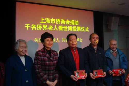 中新網(wǎng)1月26日電 據(jù)上海市僑辦消息,1月21日上午,上海市僑商會(huì)在華僑大廈舉行捐助千名僑界老人看世博授票儀式。