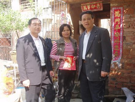 1月26日上午,茂名市外事僑務(wù)局副局長陳煌、調(diào)研員帶領(lǐng)僑務(wù)科人員,在電白外事僑務(wù)局局長郭水安等人的陪同下,深入到電白縣水東鎮(zhèn)慰問下崗歸僑劉二妹、黃秀英二人。劉二妹是越南歸僑,靠打散工維持生計,生活困難,前階段所住的磚瓦房屋坍塌,在僑務(wù)及其他部門的支持下得以修繕繼續(xù)居住。陳煌鼓勵劉二妹積極面對生活,并囑咐電白縣外事僑務(wù)局要繼續(xù)關(guān)心劉二妹的困難,盡量給予工作和生活上的幫助。黃秀英是印尼歸僑,其一子一女尚在讀書,當了解到黃秀英大兒子今年讀高三,即將參加高考時,僑務(wù)科同志趕緊提醒她到僑務(wù)部門申辦“三僑生”證明。陳煌表示會繼續(xù)關(guān)心黃秀英子女讀書困難問題,盡量給予幫助。